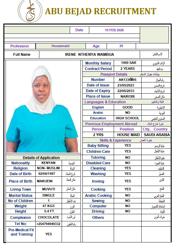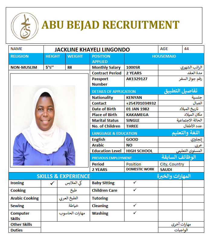 المهنة : عاملة منزلية