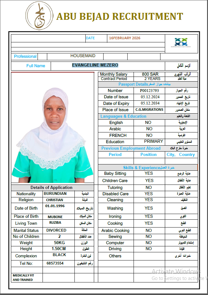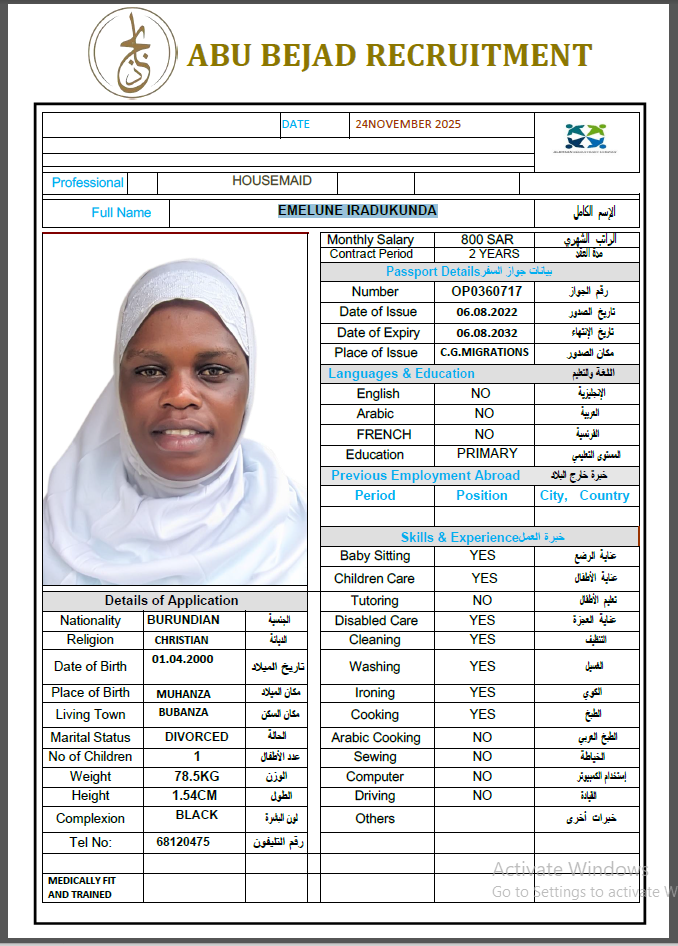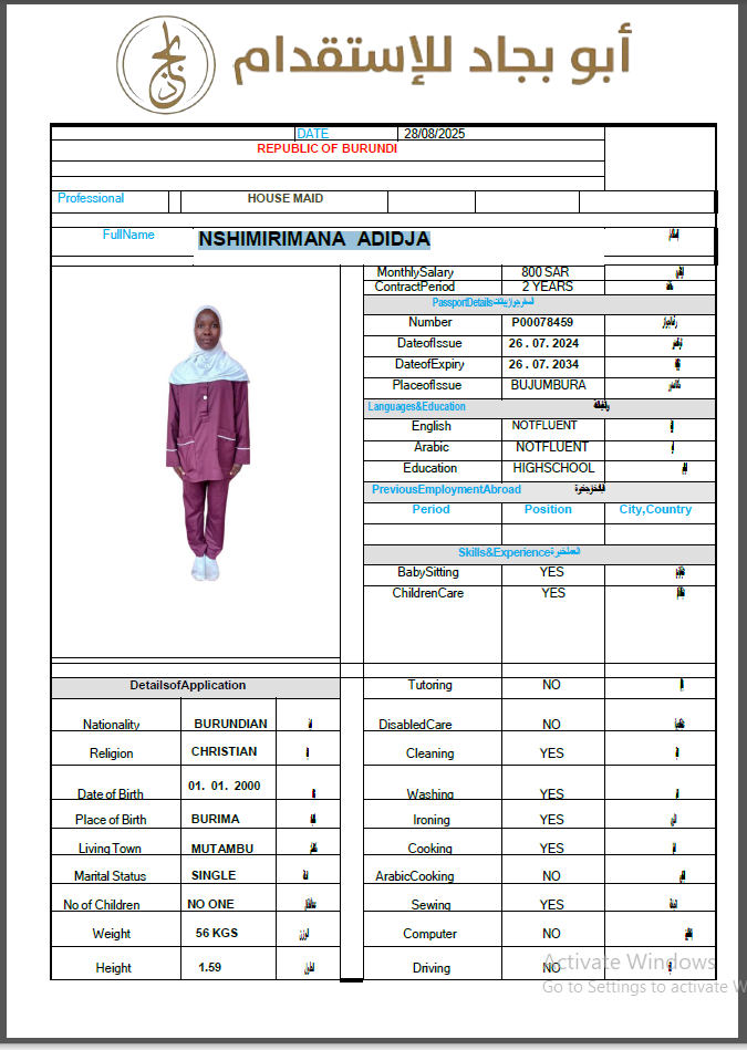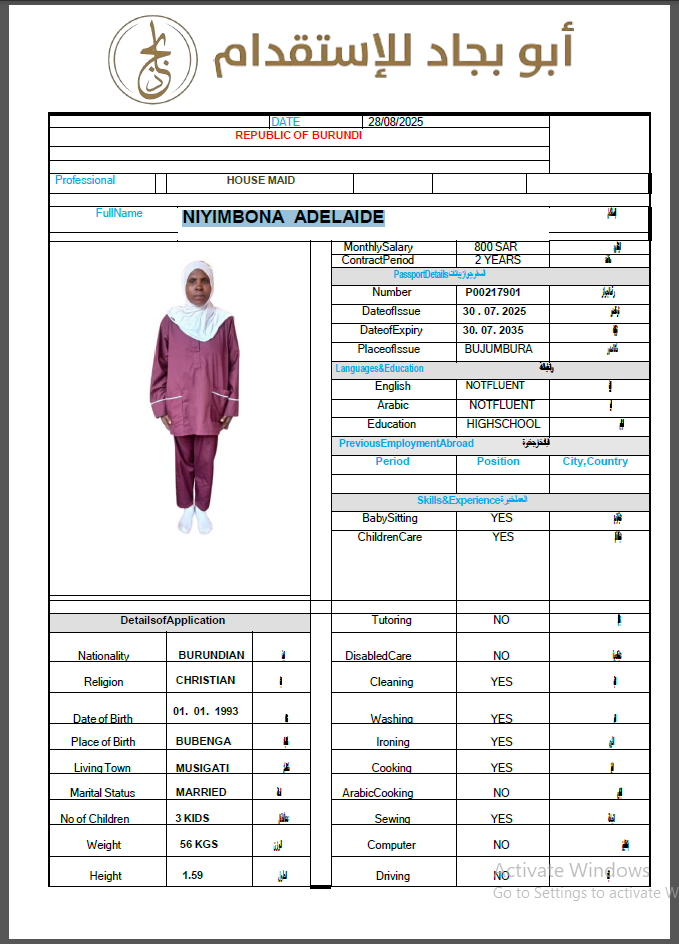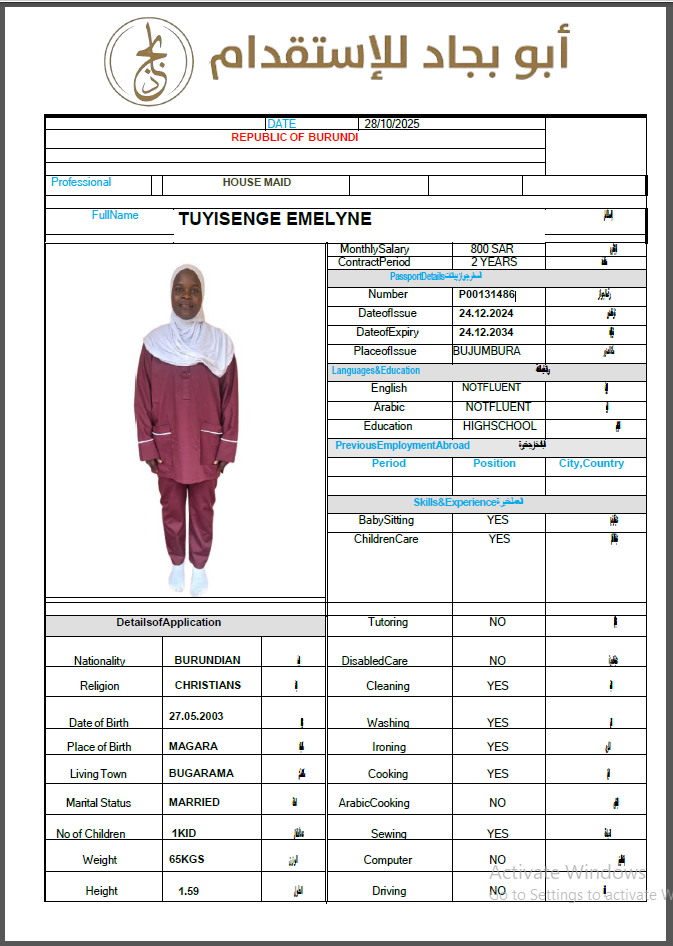 المهنة : عاملة منزلية