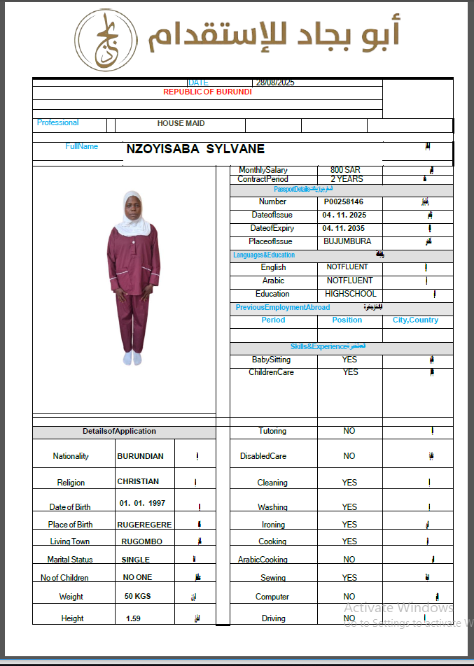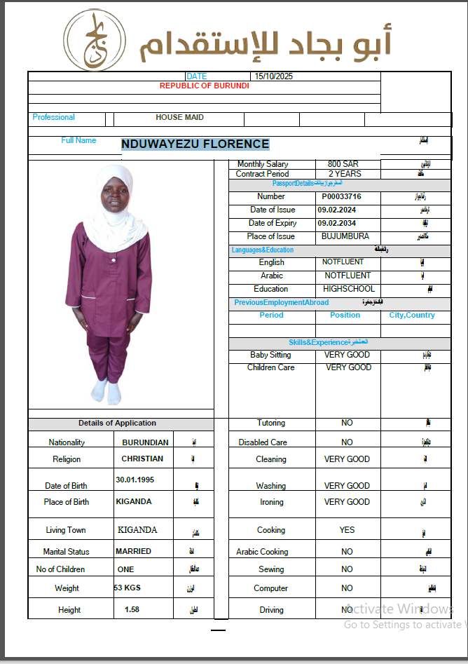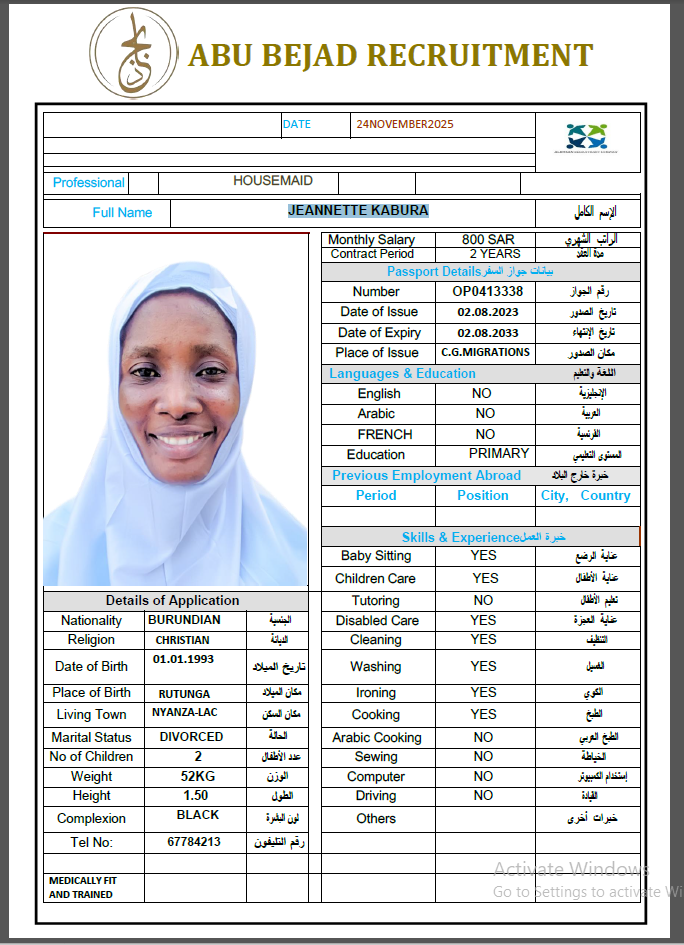 الجنسية : بوروندي