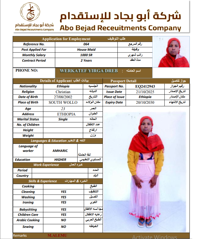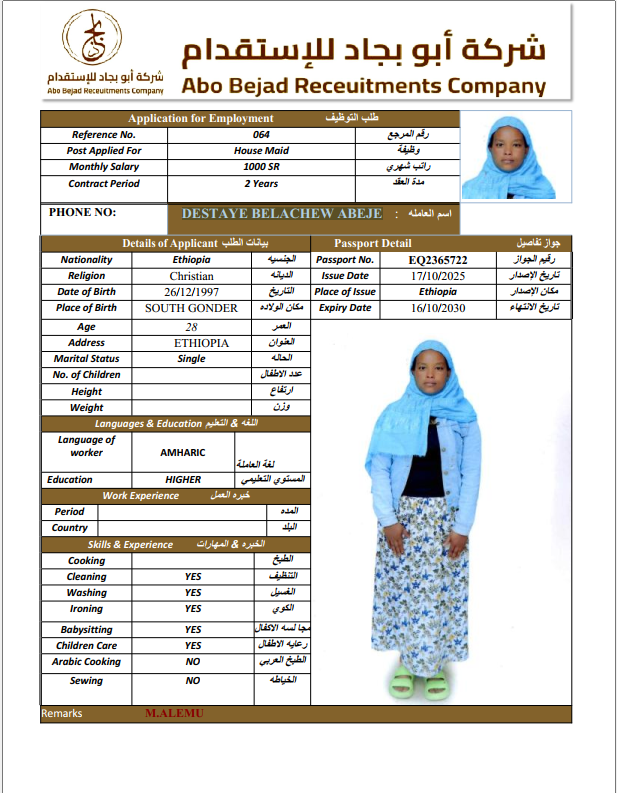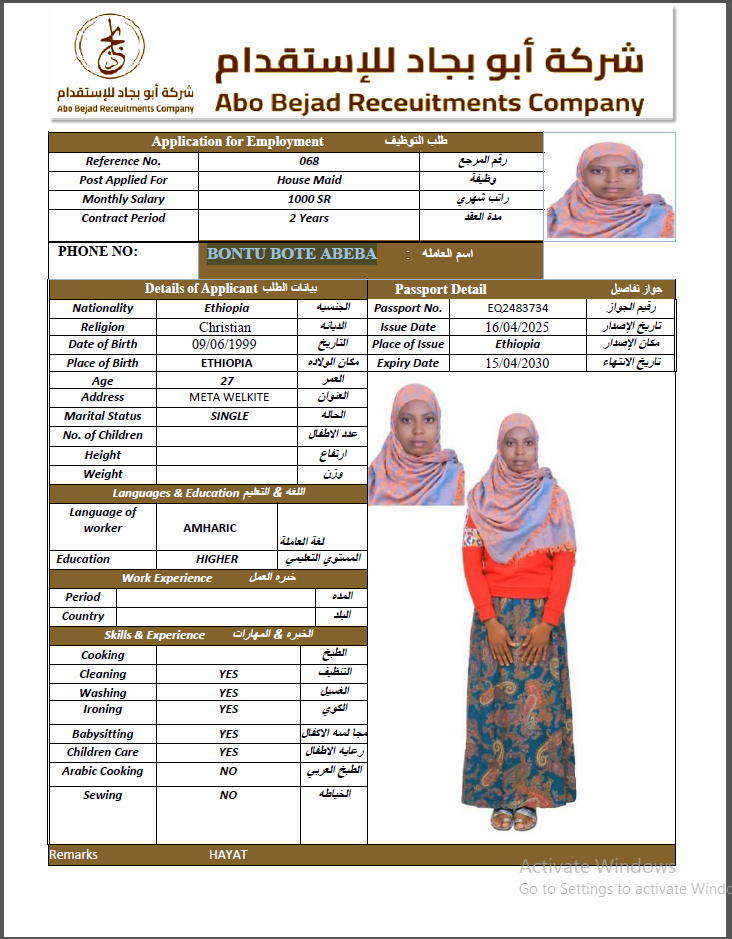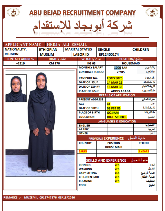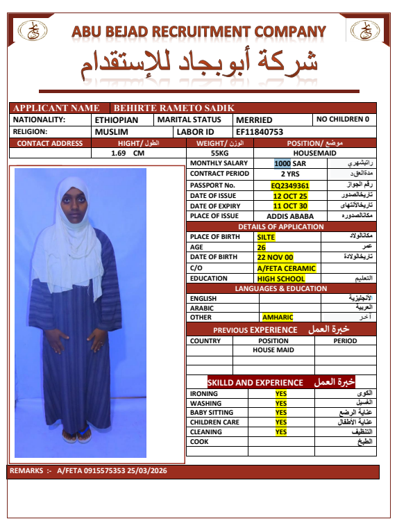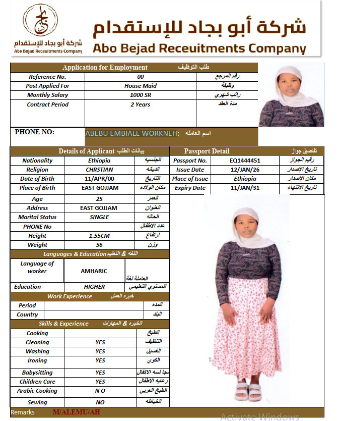 المهنة : عاملة منزلية