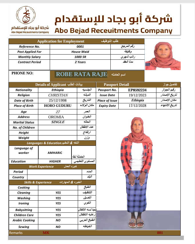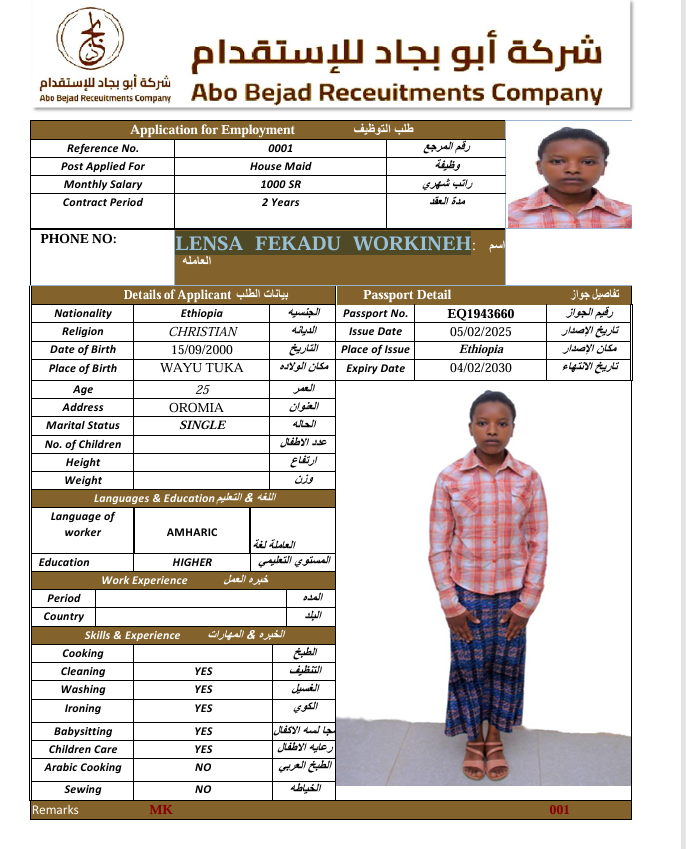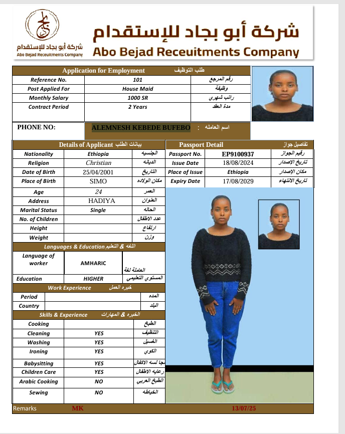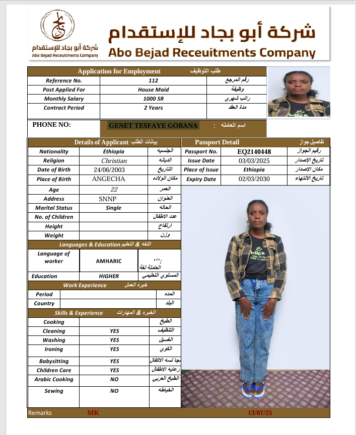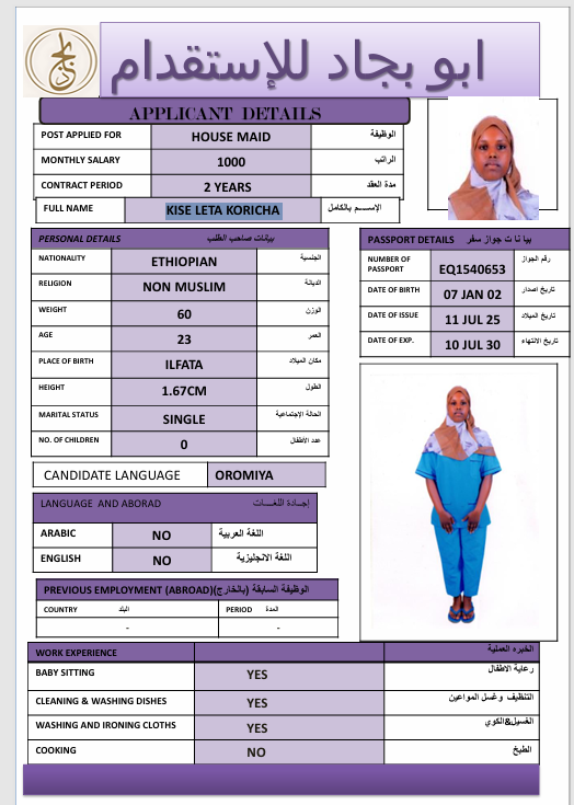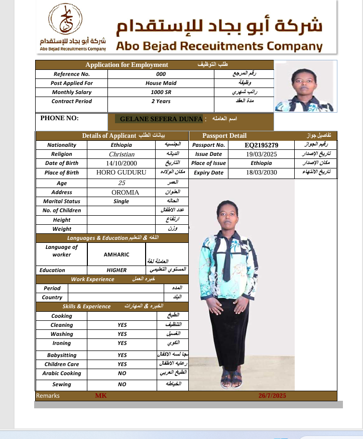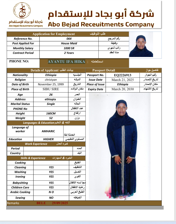 المهنة : عاملة منزلية