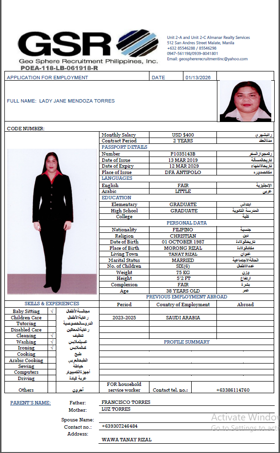 الجنسية : الفلبين