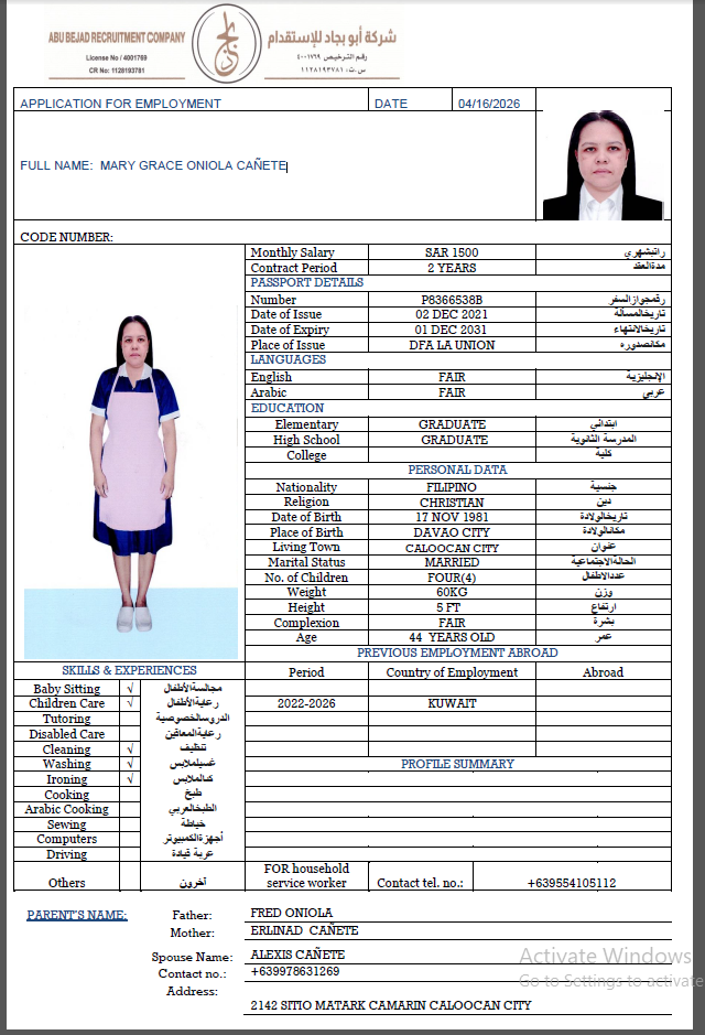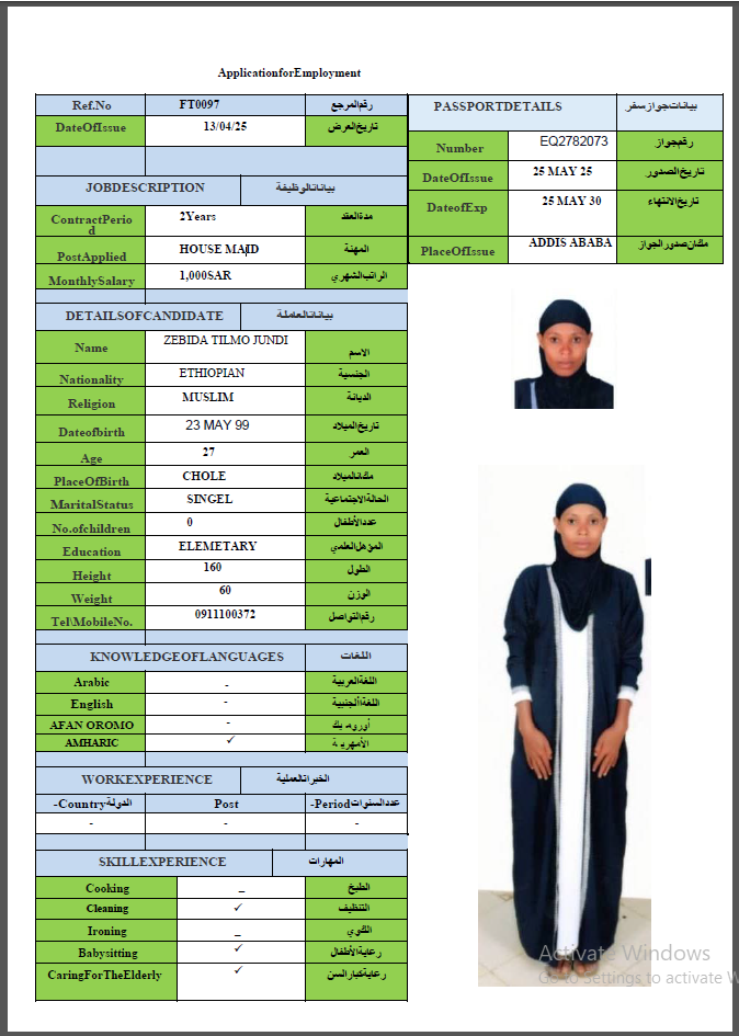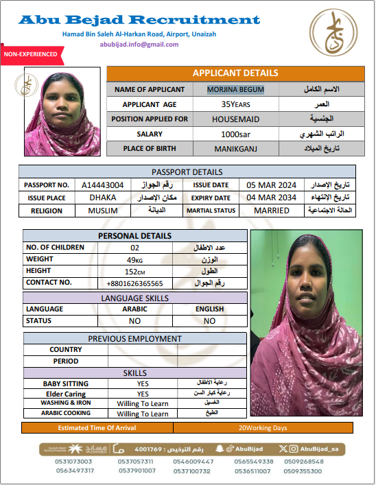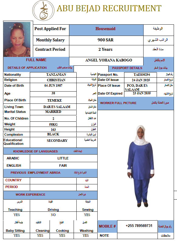 المهنة : عاملة منزلية