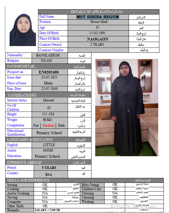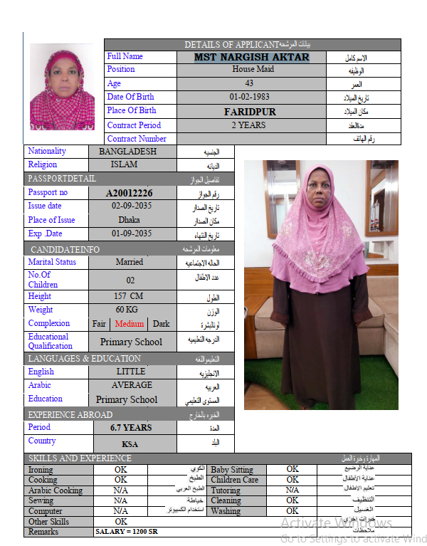 الجنسية : بنجلادش