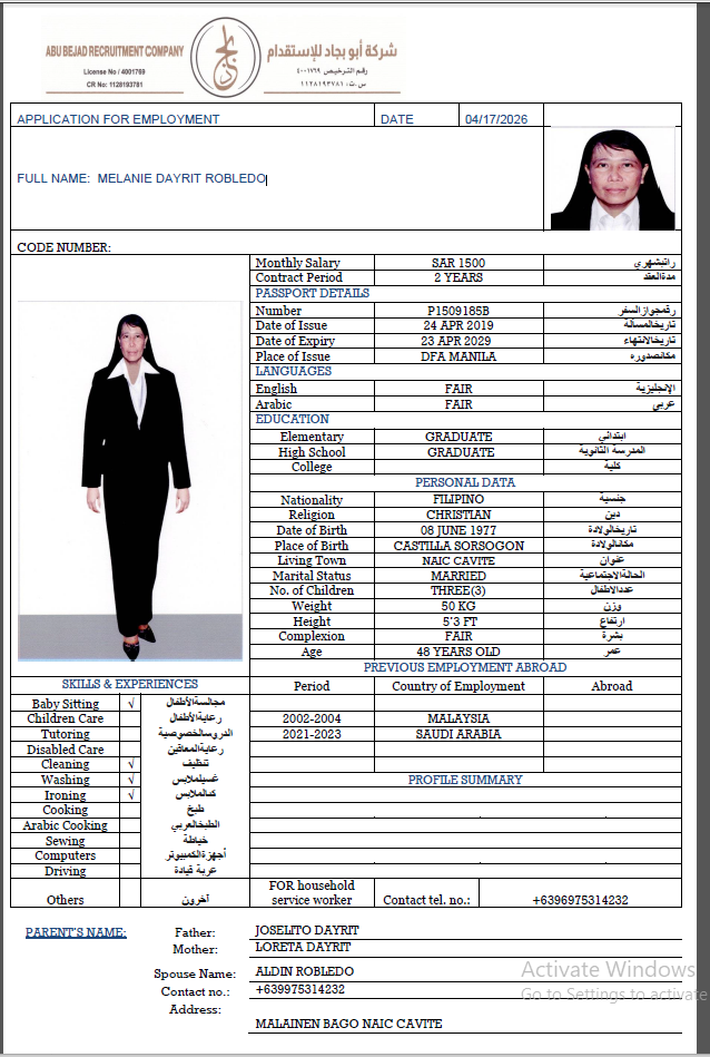 الجنسية : الفلبين