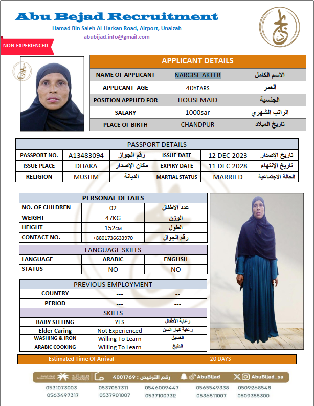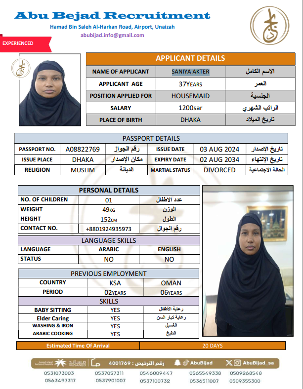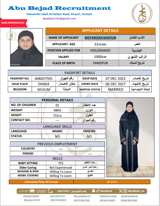 سعر الاستقدام : 7750 ريال