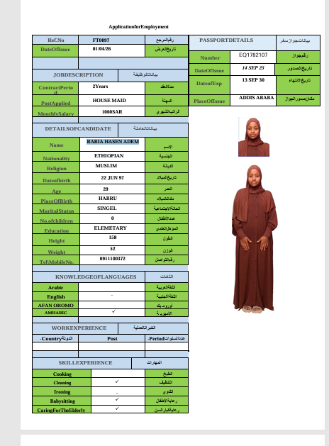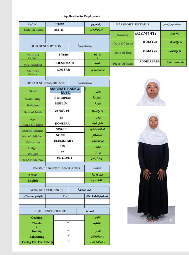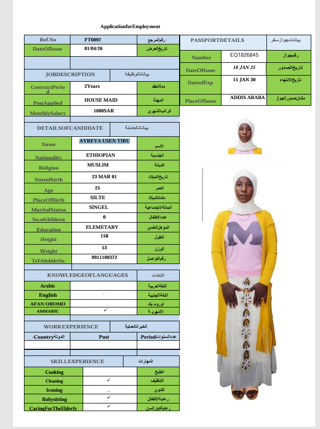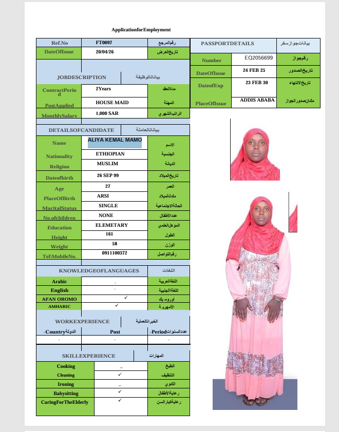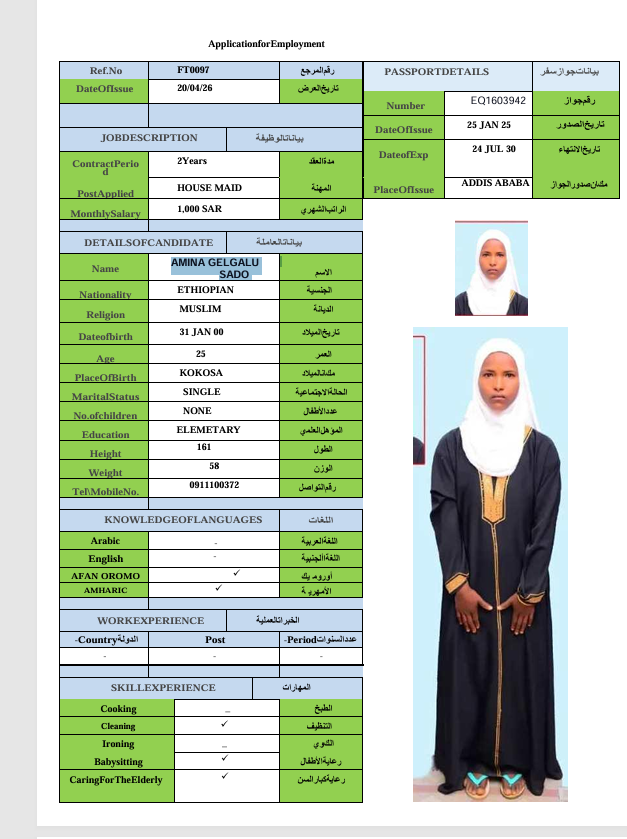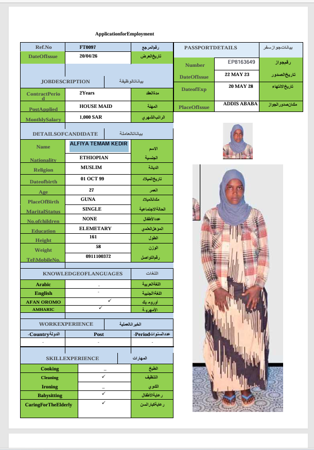 الجنسية : إثيوبيا
