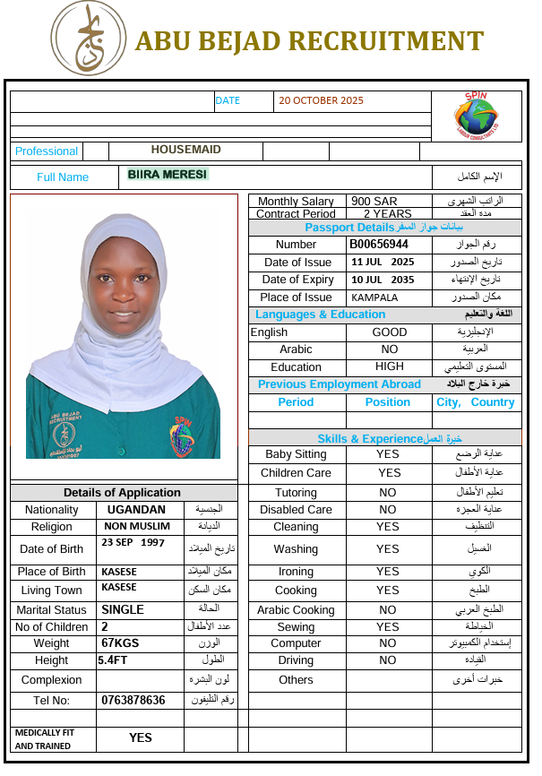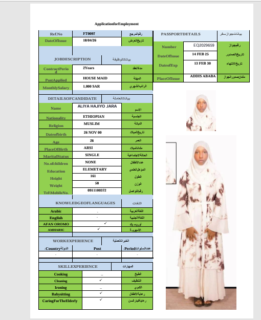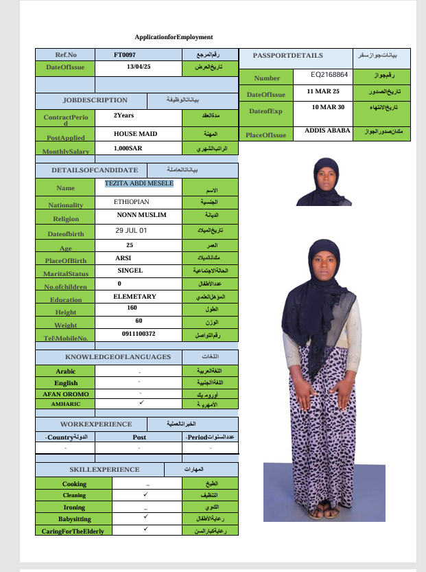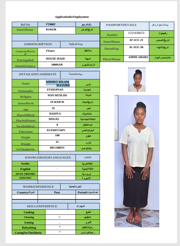المهنة : عاملة منزلية