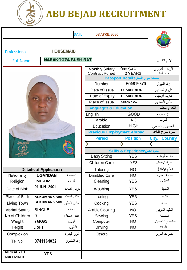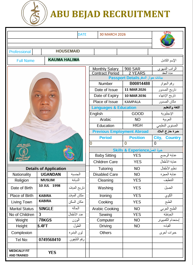 سعر الاستقدام : 4650 ريال