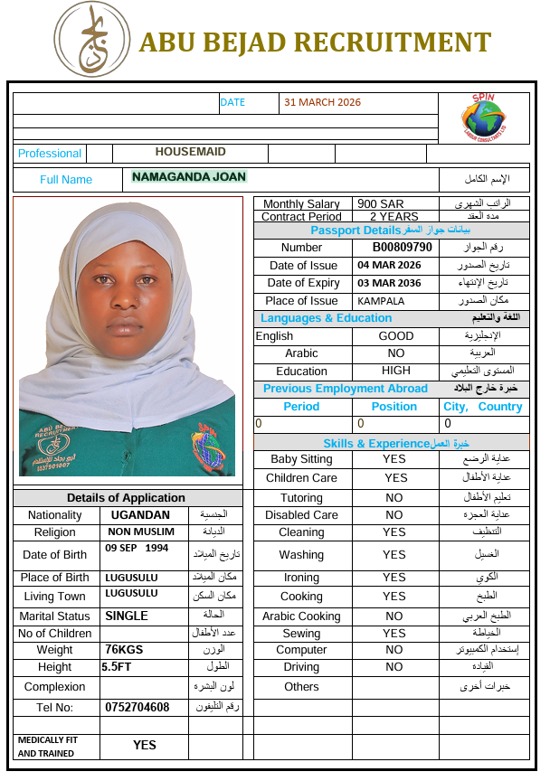الجنسية : اوغندا