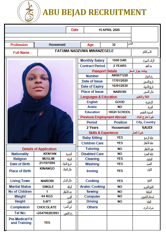 الجنسية : كينيا