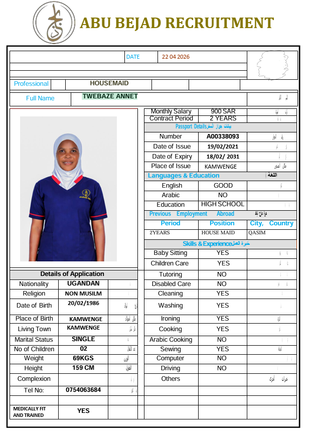 سعر الاستقدام : 4650 ريال