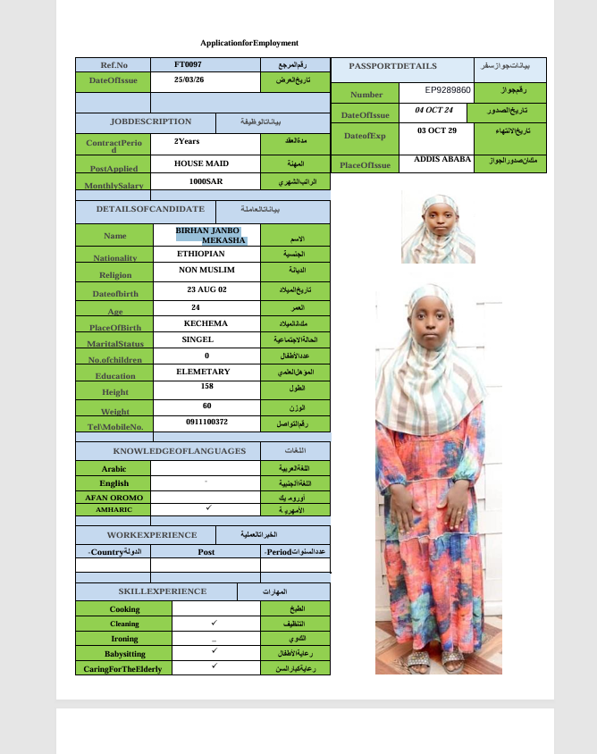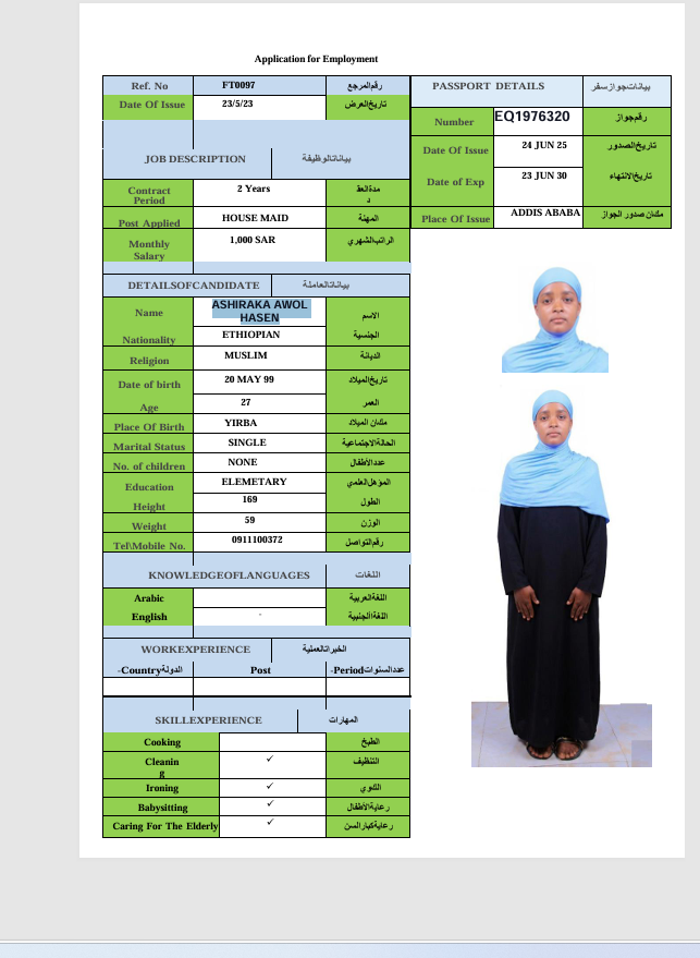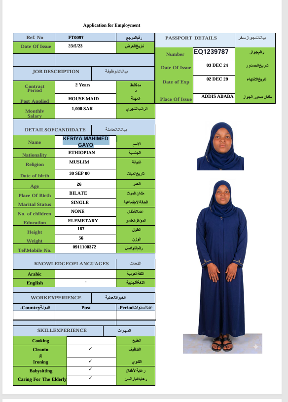 الجنسية : إثيوبيا