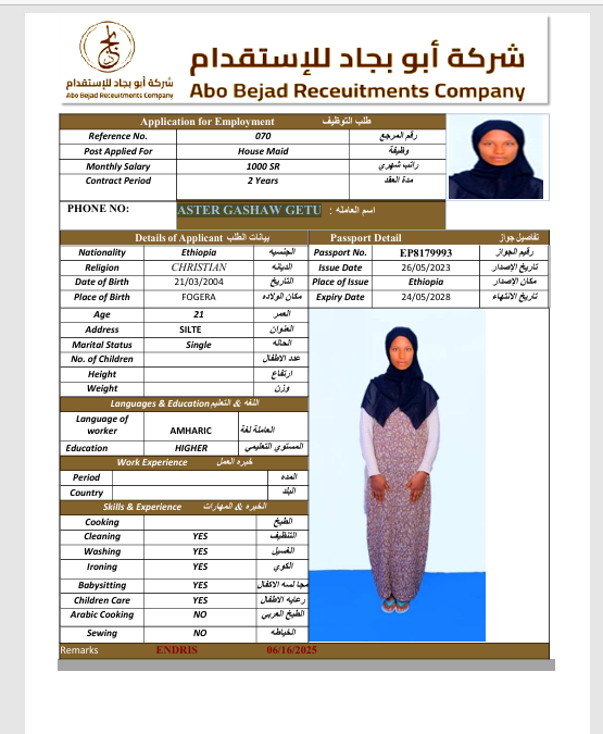 سعر الاستقدام : 7750 ريال