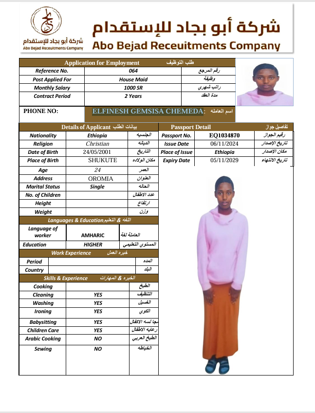 الجنسية : إثيوبيا
