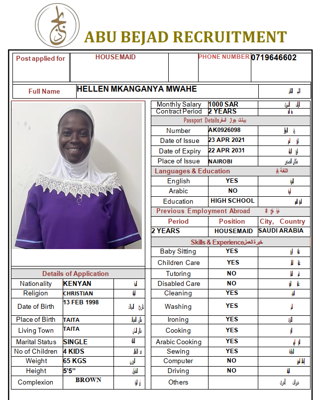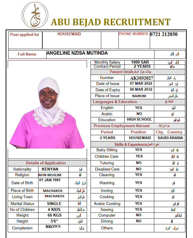 المهنة : عاملة منزلية