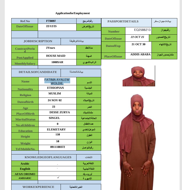 الجنسية : إثيوبيا