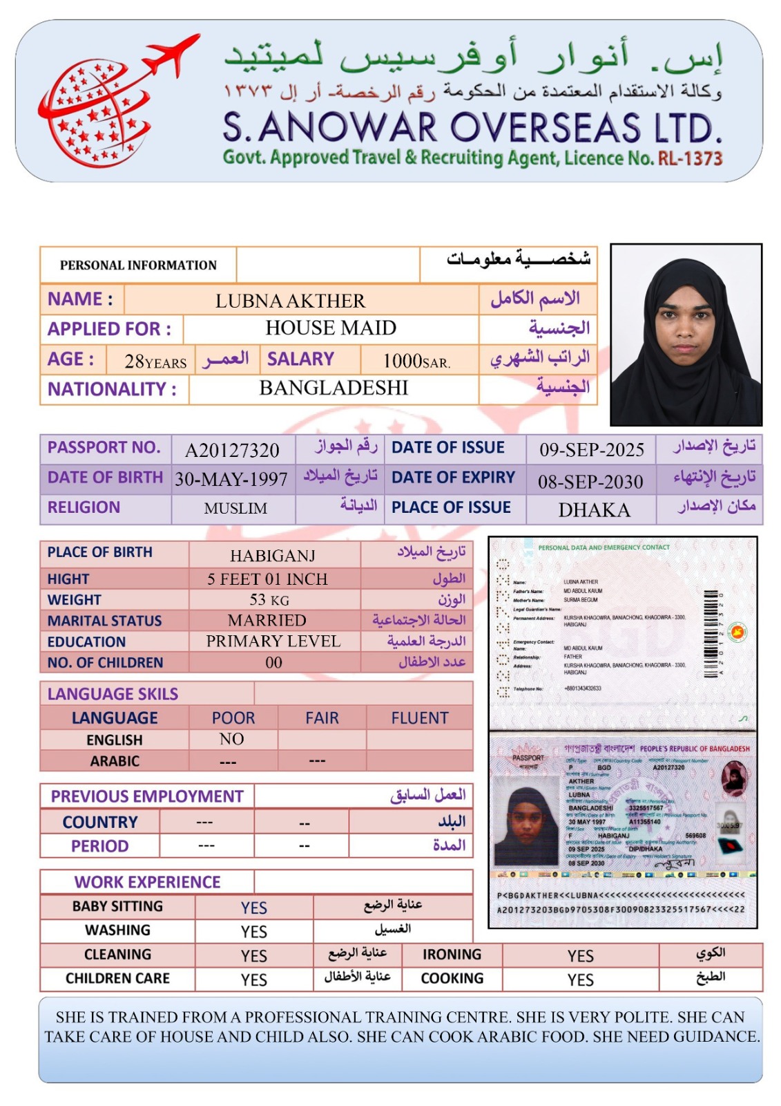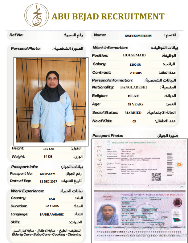 سعر الاستقدام : 7750 ريال