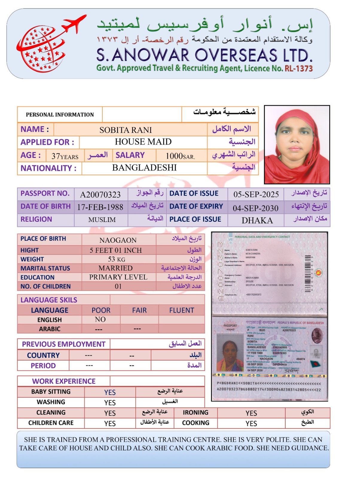 سعر الاستقدام : 5550 ريال