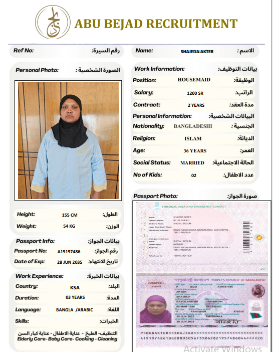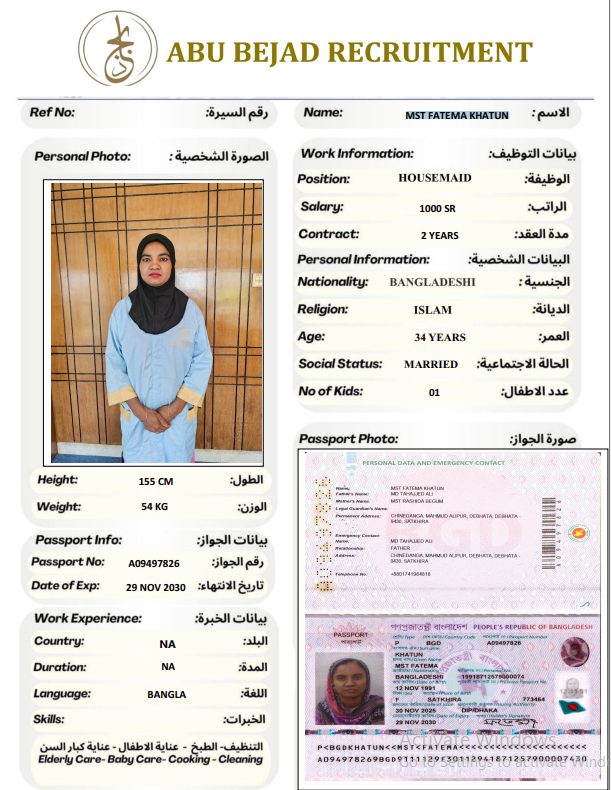المهنة : عاملة منزلية