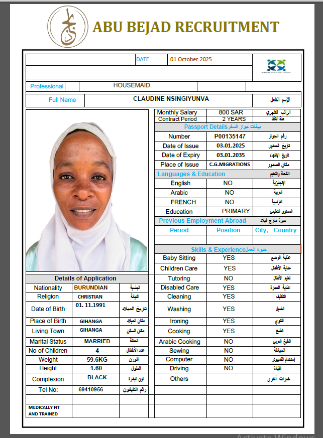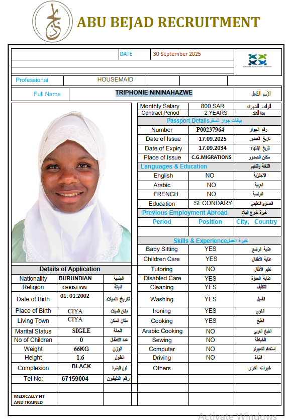 الجنسية : بوروندي
