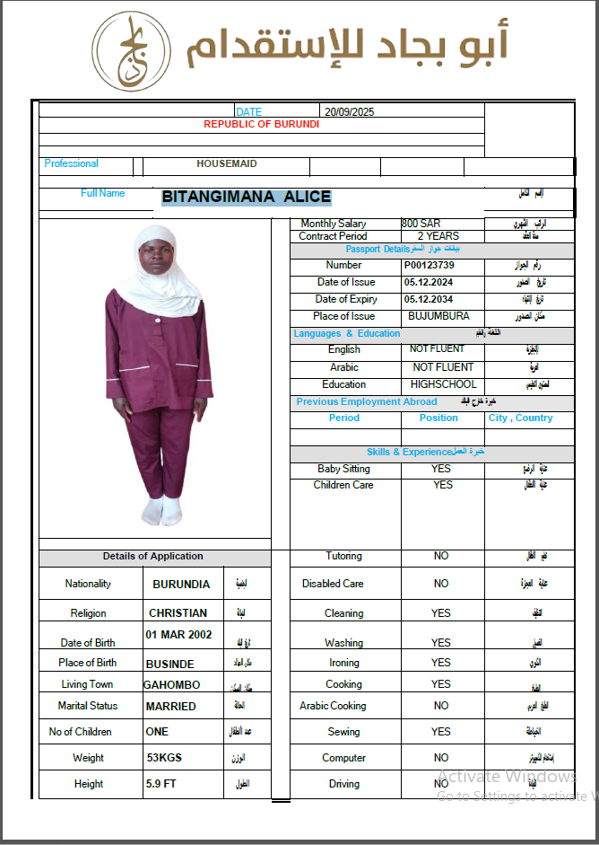 BITANGIMANA ALICE