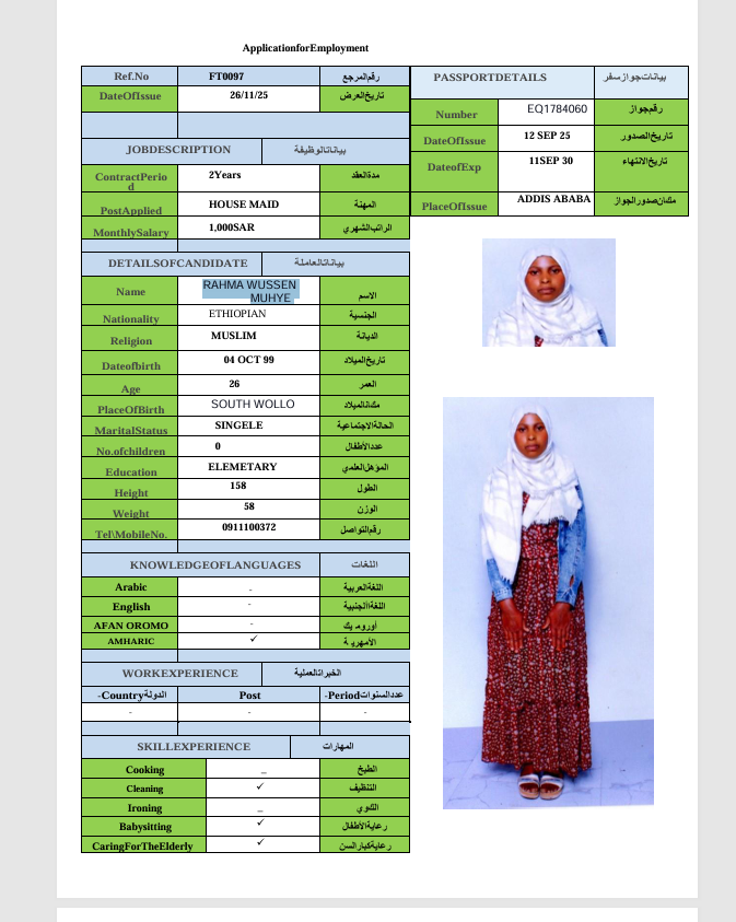 الجنسية : إثيوبيا