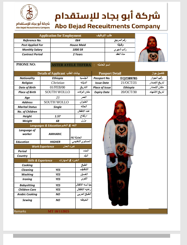 سعر الاستقدام : 7799 ريال