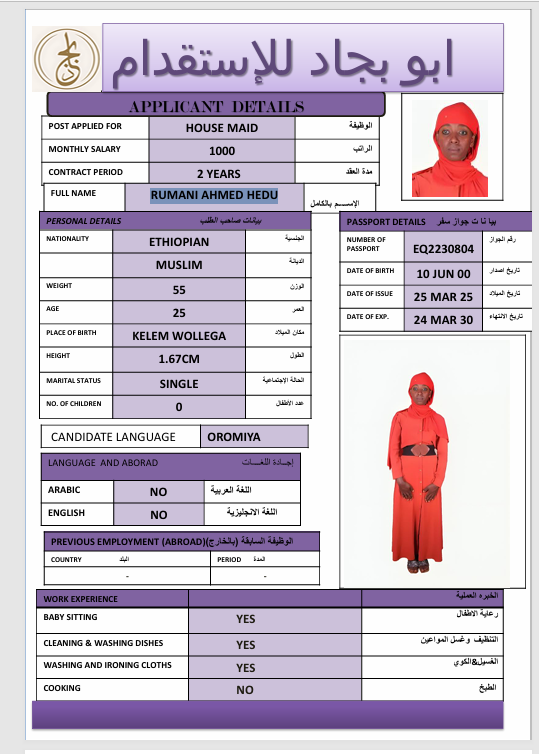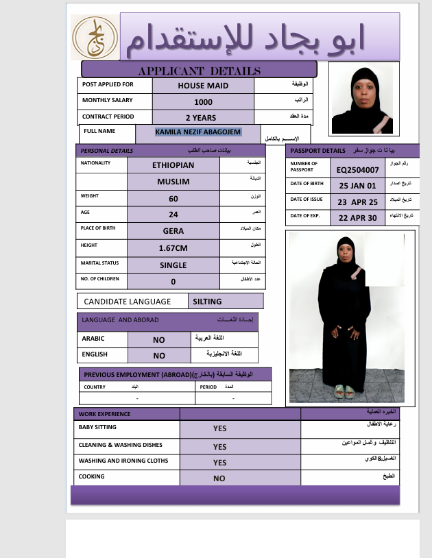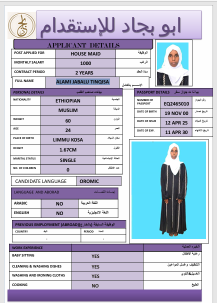 المهنة : عاملة منزلية