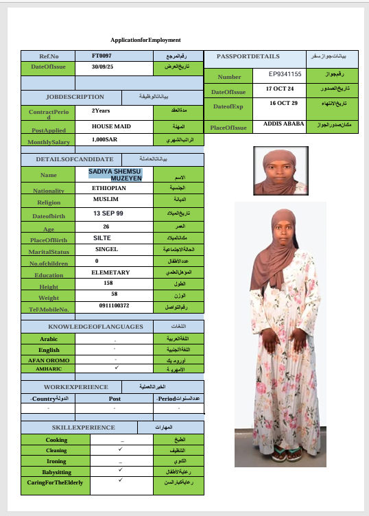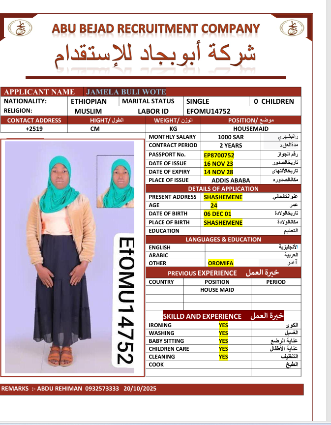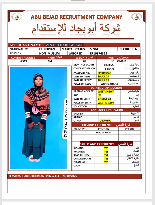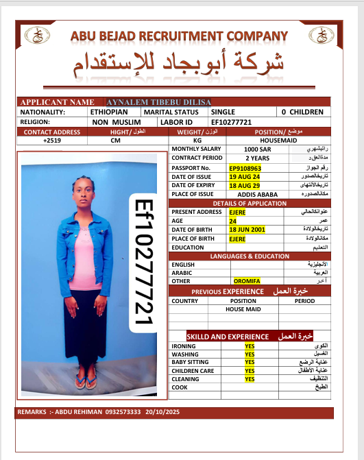 الجنسية : إثيوبيا
